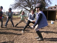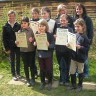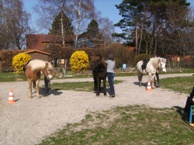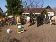 Am Dienstag, den 6. April, trafen wir uns alle zuerst einmal bei Gisa. Nach einer kurzen Besprechung, in der wir erfuhren was uns in den nächsten Tagen alles so erwarten würde, bekamen wir unsere (noch leeren) Theoriemappen und dann ging es auch schon nach draußen zu den Pferden. Da Gisas Pferde alle artgerecht im Offenstall leben, hatten wir erst einmal ordentlich was zu putzen. Zum Reiten wurden wir in zwei Gruppen mit jeweils drei Kindern eingeteilt. Unsere erste Reitstunde verlief teilweise etwas chaotisch, am Nachmittag klappte es mit Karins Hilfe allerdings schon erheblich besser. Beim Mittagessen war es immer total lustig, es wurde viel gelacht und jeder gab die ein oder andere Geschichte zum Besten. In der Mittagspause waren wir eigentlich immer gut beschäftigt, sei es mit Mäusefangen, Misten oder Pferde füttern. Im Verlauf der nächsten Tage lernten wir viel Neues und es klappte immer besser. Unsere Theoriemappen füllten sich zusehends, sodass der ein oder andere schon Probleme mit dem Umblättern hatte. Viel zu schnell waren die vier Tage vorbei und die Prüfung stand an. Pünktlich um neun trafen wir uns alle etwas aufgeregt bei Gisa und misteten noch einmal den Offenstall und die Weide ab. Gegen halb zehn kam dann Elli, unsere Prüferin. Sie schaute uns beim Aufhalftern, Anbinden und Putzen unserer Pferde zu und stellte nebenbei jedem von uns ein paar Fragen zur Haltung und Pflege des Islandpferdes. Danach führten wir unsere Pferde zum Reitplatz und machten uns fertig zum Aufsitzen. Wir ritten ca. 20 min. selbständig Schritt und Trab und zum Abschluss noch über ein paar Stangen, dann war auch schon der größte Teil überstanden. Erleichtert aufatmen… Nachdem wir unsere Pferde versorgt hatten, kam der theoretische Teil. Elli stellte jedem noch zwei Fragen, dann hatten wir es auch schon hinter uns. Anschließend ließen wir beim Brezel-Essen im Garten die vergangenen Tage gemütlich ausklingen.